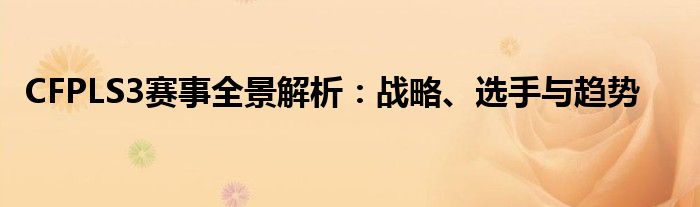 本文将对CFPLS3赛事进行全方位的深度解析,包括战术战略、优秀选手以及整体趋势。作为一年一度最受瞩目的电子竞技盛会,CFPLS3汇集了全球顶尖战队和顶尖选手,展现了一场场精彩绝伦的比赛。