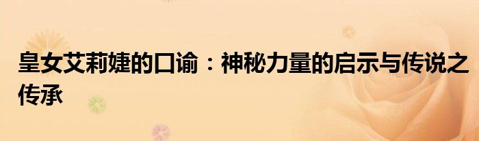 皇女艾莉婕的口谕:神秘力量的启示与传说之传承