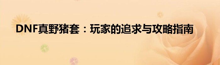 本文详细介绍了《DNF》中的真野猪套,为玩家们提供一套全面的追求与攻略指南。本文将涵盖以下几个方面: