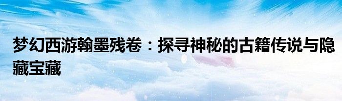梦幻西游翰墨残卷:探寻神秘的古籍传说与隐藏宝藏
