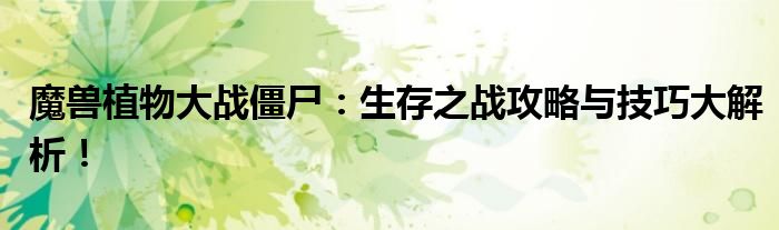 总结:《魔兽植物大战僵尸:生存之战》是一款充满挑战和乐趣的游戏。通过本文的攻略与技巧解析,相信你一定能够更好地掌握游戏,享受这个充满魔法与僵尸的世界!