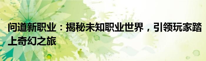问道新职业:揭秘未知职业世界,引领玩家踏上奇幻之旅