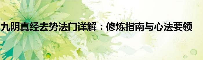 《九阴真经》的去势法门是武学修炼过程中的重要环节。通过本文的介绍,希望读者能够更好地理解并掌握相关修炼法门和心法要领,从而在修炼过程中取得更好的效果。