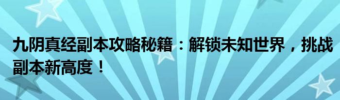 九阴真经副本攻略秘籍:解锁未知世界,挑战副本新高度!