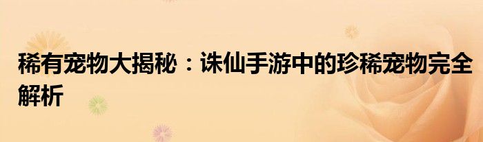 本文将详细解析诛仙手游中稀有宠物的种类、获取方式、属性特点以及培养策略,帮助玩家更好地了解和获取稀有宠物,提升游戏体验。