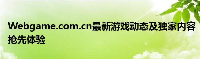Webgame.com.cn最新游戏动态及独家内容抢先体验