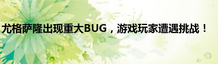 尤格萨隆出现重大BUG,游戏玩家遭遇挑战!