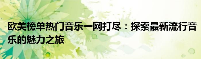 欧美榜单热门音乐一网打尽:探索最新流行音乐的魅力之旅
