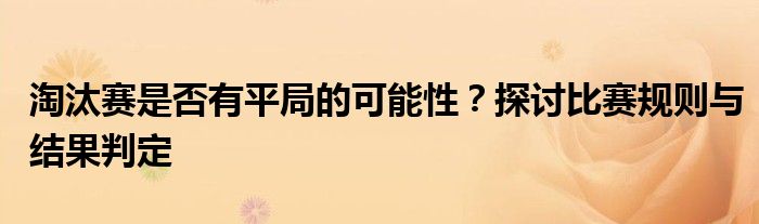 淘汰赛是否有平局的可能性?探讨比赛规则与结果判定