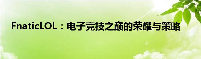 《FnaticLOL:电子竞技之巅的荣耀与策略》——本文将深入探讨电子竞技界的佼佼者——FnaticLOL战队的发展历程、荣耀时刻以及独特的战术策略。我们将一起见证这支队伍如何从全球各地脱颖而出的过程,揭示他们背后的努力与付出。