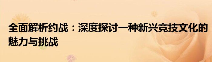 本文将全面解析“约战”这一关键词,深入探讨其背后所代表的新兴竞技文化的魅力以及所面临的挑战。我们将从多个角度审视“约战”,包括其定义、起源、发展、影响以及未来趋势等方面,以期为读者呈现一个全面而深入的了解。