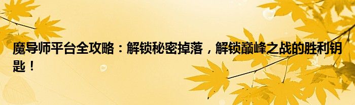 魔导师平台全攻略:解锁秘密掉落,解锁巅峰之战的胜利钥匙!