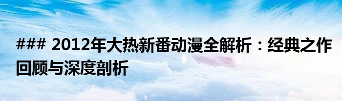 ### 2012年大热新番动漫全解析:经典之作回顾与深度剖析