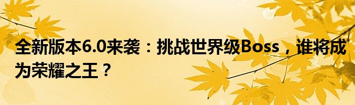 全新版本6.0来袭:挑战世界级Boss,谁将成为荣耀之王?