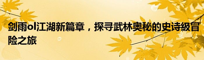 剑雨ol江湖新篇章,探寻武林奥秘的史诗级冒险之旅