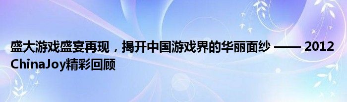 盛大游戏盛宴再现,揭开中国游戏界的华丽面纱 —— 2012 ChinaJoy精彩回顾