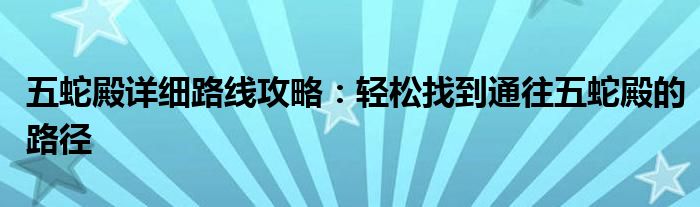 五蛇殿详细路线攻略:轻松找到通往五蛇殿的路径