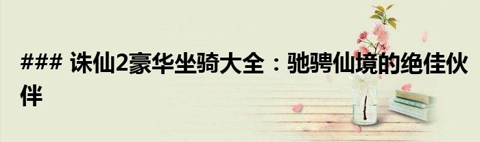 ### 诛仙2豪华坐骑大全:驰骋仙境的绝佳伙伴