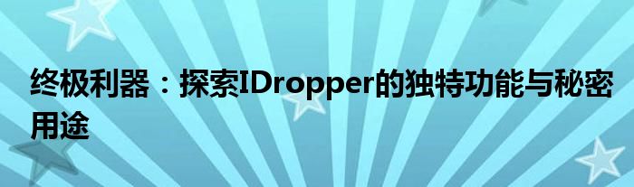 总的来说,IDropper是一个强大而实用的工具,具备丰富的功能和多样的用途。通过深入了解和使用IDropper,我们可以发现它的独特魅力和价值。在这个日新月异的科技时代,让我们一起探索更多关于IDropper的奥秘和功能吧!
