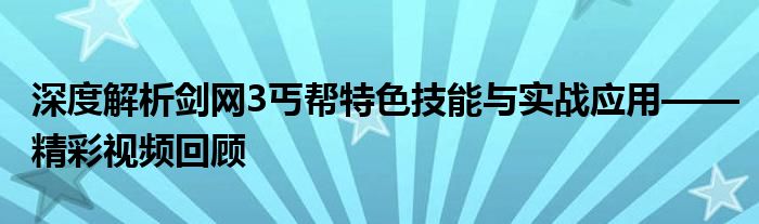 总结:通过本次视频,我们将带你深入了解《剑网3》中丐帮的特色技能和实战应用,让你在游戏中更加游刃有余。快来观看视频,一起领略丐帮的魅力吧!