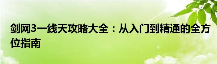 剑网3一线天攻略大全:从入门到精通的全方位指南