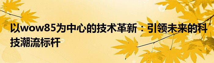 以wow85为中心的技术革新:引领未来的科技潮流标杆