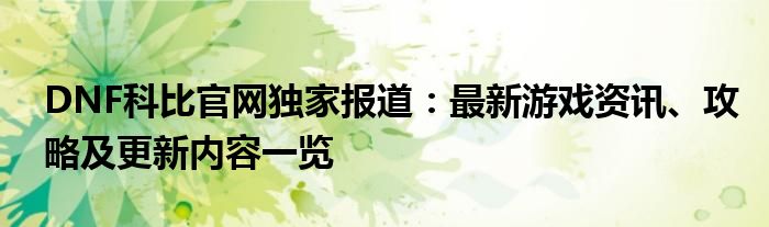 DNF科比官网独家报道:最新游戏资讯、攻略及更新内容一览