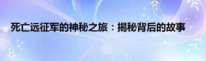 死亡远征军,一支神秘而充满传奇色彩的队伍,踏上了一段未知之旅。他们为了某种使命,不惧生死,勇往直前。在这支队伍的背后,隐藏着许多不为人知的故事和秘密。今天,我们将揭开这支远征军的神秘面纱,探寻他们背后的故事。
