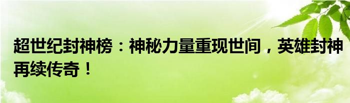 超世纪封神榜:神秘力量重现世间,英雄封神再续传奇!