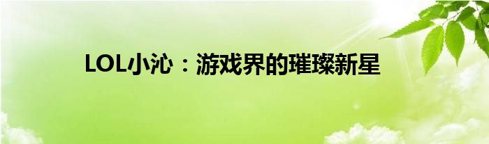 LOL小沁:游戏界的璀璨新星