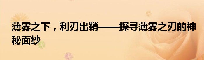 薄雾之下,利刃出鞘——探寻薄雾之刃的神秘面纱