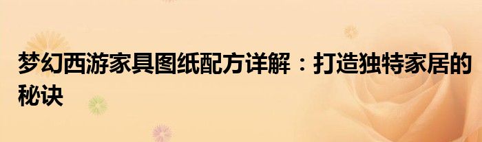 梦幻西游家具图纸配方详解:打造独特家居的秘诀