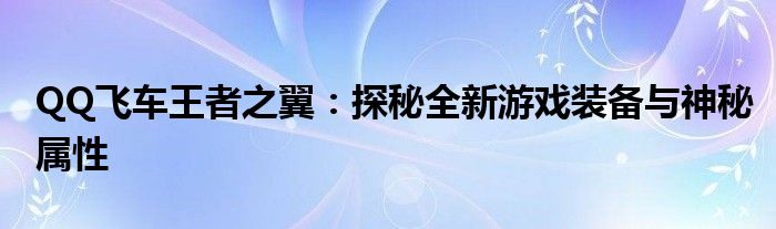 QQ飞车王者之翼:探秘全新游戏装备与神秘属性