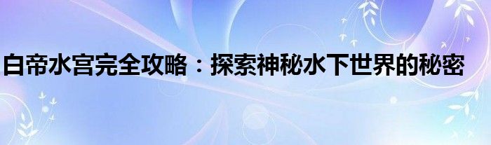 白帝水宫完全攻略:探索神秘水下世界的秘密