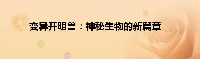 总结:变异开明兽是神秘而独特的生物,它们的存在给我们带来了无尽的惊奇和探索的机会。面对这些生物,我们需要更多的理解和尊重,而不是恐惧和误解。关于变异开明兽的更多未知,等待我们去揭晓。