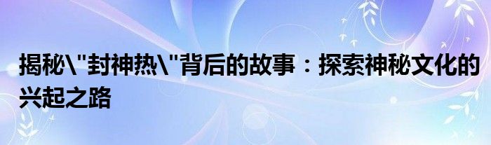 揭秘"封神热"背后的故事:探索神秘文化的兴起之路