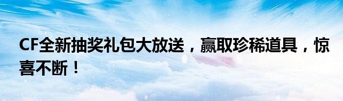 快来参加我们的“CF抽奖礼包”活动吧!感受游戏中的惊喜和乐趣,赢取珍稀道具,成为游戏中的佼佼者!不要错过这个机会,让我们一起享受这个充满惊喜和乐趣的活动吧!