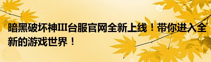大家好!各位玩家期待已久的《暗黑破坏神III》台服官网正式上线啦!这个神秘的游戏世界即将向大家敞开大门,充满各种未知挑战和刺激体验,带你领略前所未有的游戏乐趣。