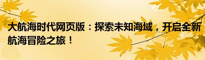 大航海时代网页版:探索未知海域,开启全新航海冒险之旅!
