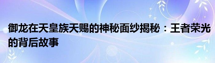 御龙在天皇族天赐的神秘面纱揭秘:王者荣光的背后故事