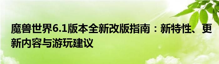 魔兽世界6.1版本全新改版指南:新特性、更新内容与游玩建议