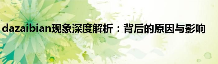 本文将深入探讨"dazaibian"现象的背后原因及其对社会、文化等方面产生的影响。我们将从定义出发,解析该词汇的来源和含义,分析其在不同领域中的应用和表现。同时,我们还将探讨这种现象背后的社会心理和文化背景,以及其对于当代社会可能带来的挑战和机遇。本文旨在帮助读者更好地理解"dazaibian"现象,以及如何应对这一社会趋势。