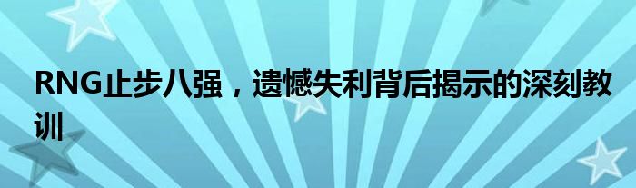 RNG止步八强,遗憾失利背后揭示的深刻教训