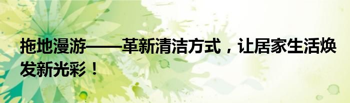 拖地漫游——革新清洁方式,让居家生活焕发新光彩!