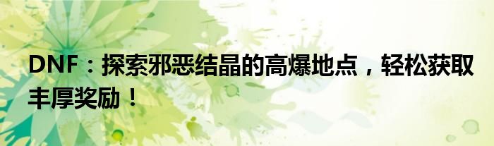 DNF:探索邪恶结晶的高爆地点,轻松获取丰厚奖励!