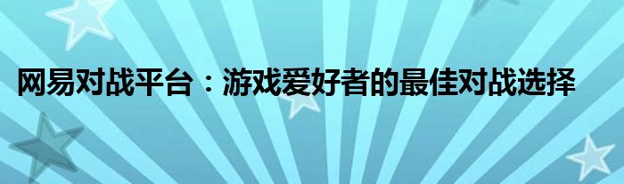 总之,网易对战平台是一个为广大游戏爱好者提供丰富资源、稳定服务器支持、社交功能、安全放心游戏环境和个性化游戏体验的对战平台。在这里,您可以找到心仪的游戏作品,享受前所未有的游戏体验。赶快加入网易对战平台,与众多游戏爱好者一起,共同体验游戏的魅力吧!