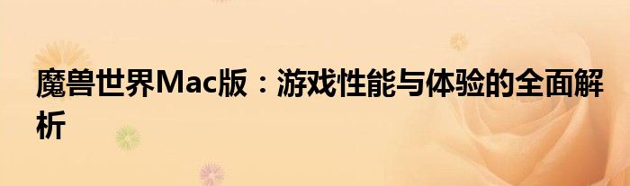 魔兽世界Mac版:游戏性能与体验的全面解析