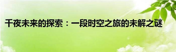 总之,“千夜未来”代表着一个充满神秘和无限可能的未来世界。在这个世界里,人类将不断突破自己的极限和挑战未知的挑战,探索这个宇宙的奥秘和秘密。让我们一起踏上这段时空之旅的征程,共同揭开千夜未来的神秘面纱,开启一个全新的未来世界的大门。