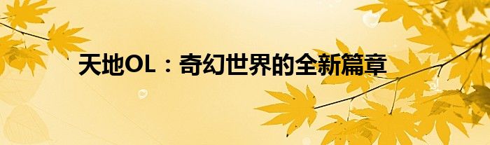 天地OL:奇幻世界的全新篇章