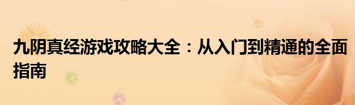 九阴真经游戏攻略大全:从入门到精通的全面指南